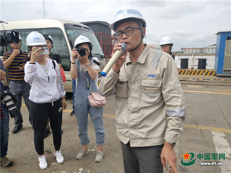 振华重工启东海洋工程公司副总经理陈新华接受记者采访。