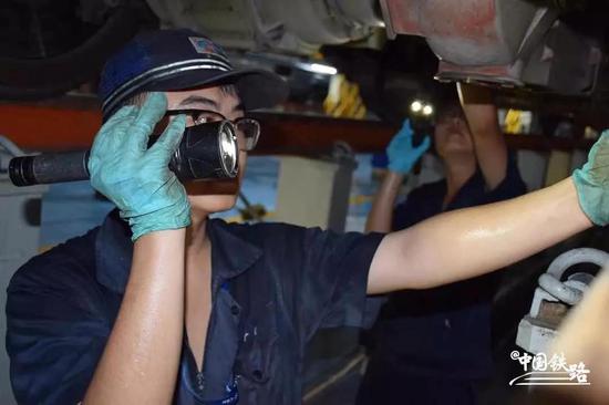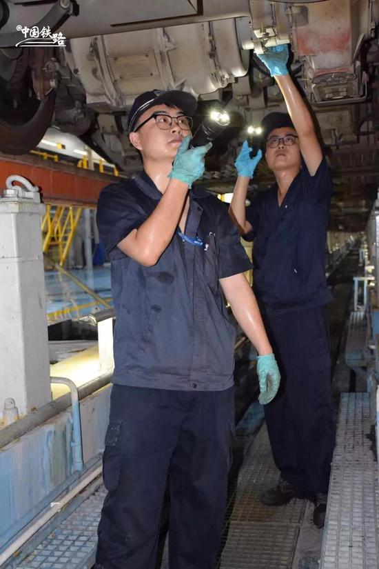 机械师认真检查车头和两侧裙板,无数次蹲下、站起,仔细检查“动感号”的每一寸“肌肤”。