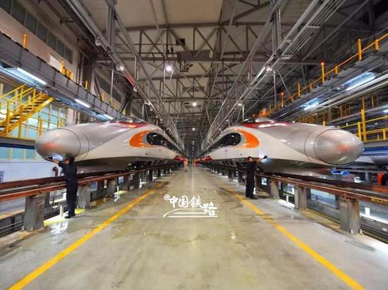 “动感号”进入检修库后,广州南动车所机械师立即开展检修作业。