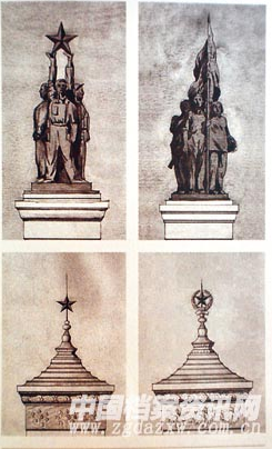 1953年10月后,纪念碑再次修改的设计方案正面图