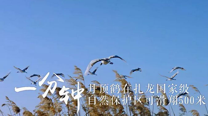 一分钟,丹顶鹤在自然保护区滑翔500米