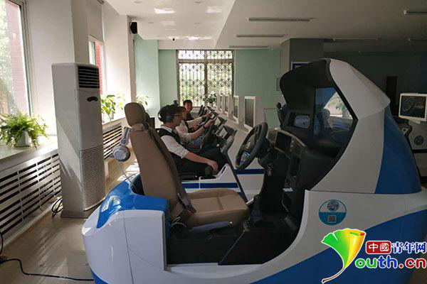学员们通过操作学车机器人,进行模拟学车练习。资料图