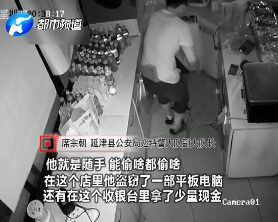 嫌疑人盗窃的物品几乎都是随机性的,但他盯上的店铺全部都是带有玻璃门的饭店,而且店主从不将铁质伸缩门关上。