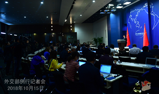 原标题:2018年10月15日外交部发言人陆慷主持例行记者会