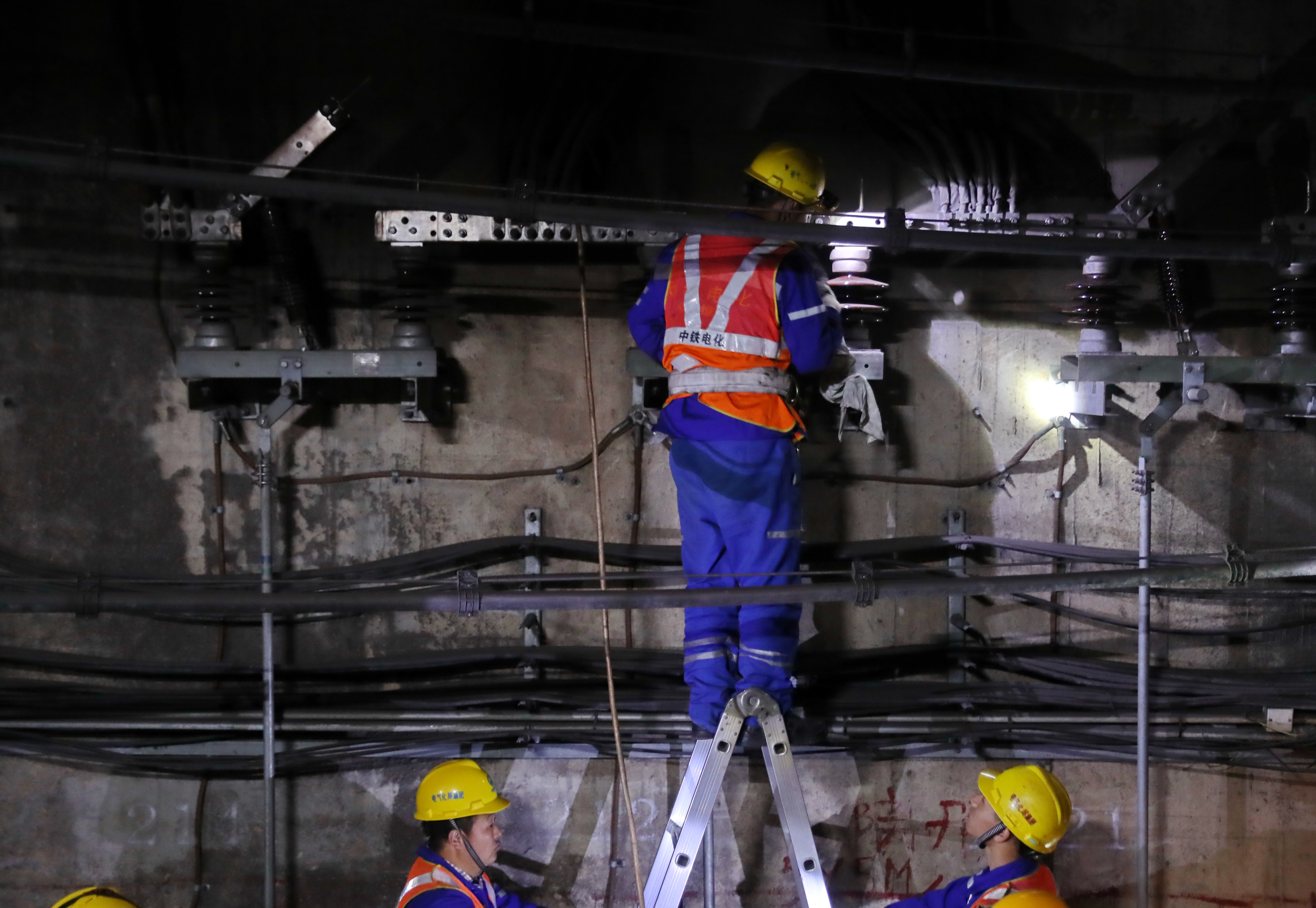 胡家鸣说,地铁每日正常运行,动力主要靠隧道上方1500伏的高压线,一旦接触网出问题,整个线路可能瘫痪。施工时,他们虽在电调中心进行备案,并做了断电处理,但仍需在高压线上接入地线,“我们一般要做3道防护措施,除了断电备案,手上带绝缘手套,还要接上地线,并多次进行验电检测。这样,即使误送了电,电流也可通过地线入地,减少对工人的伤害”。