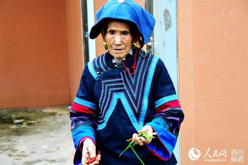 图为图为谷莫村村民在自己门前采摘辣椒。王波 摄