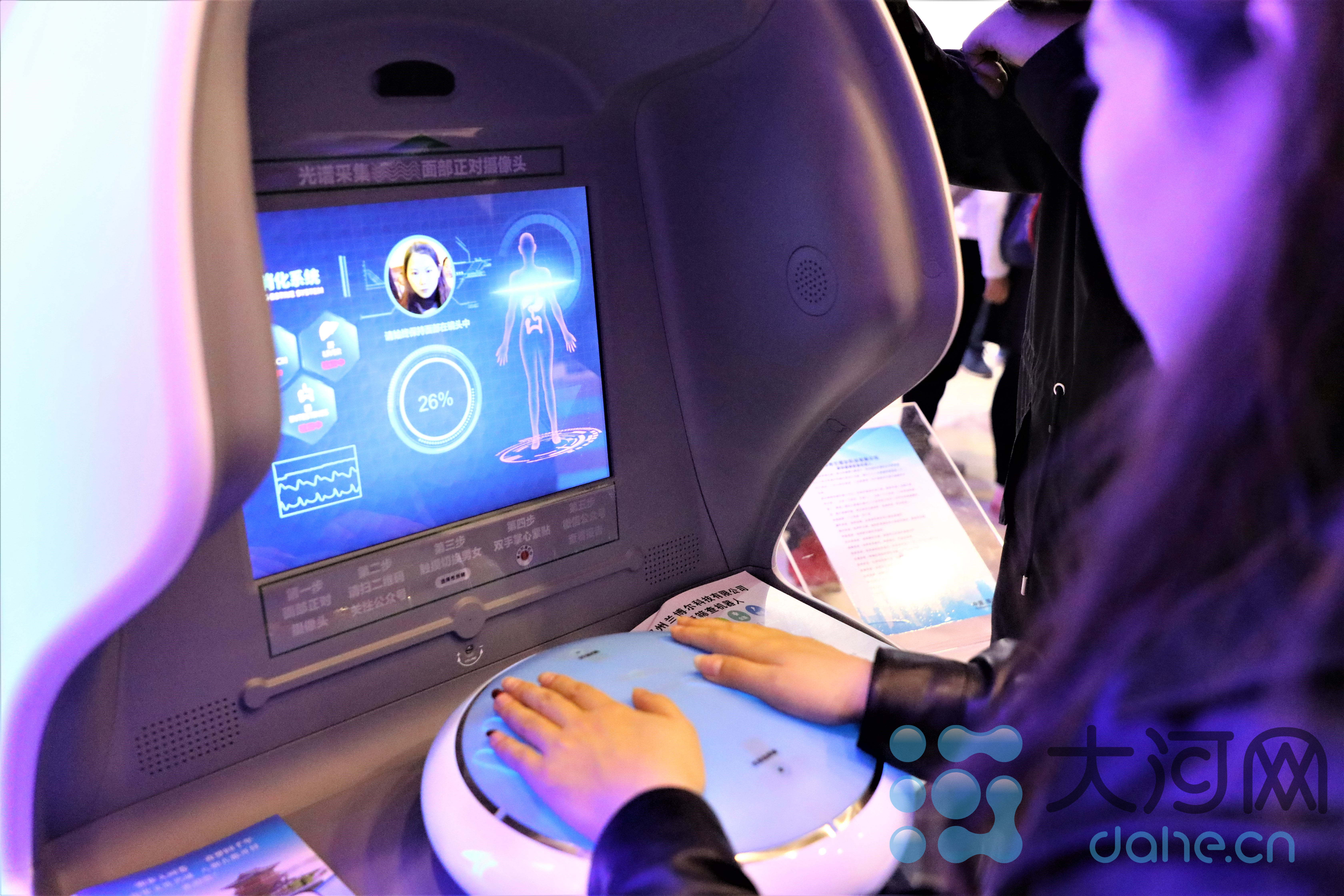 某展区的健康筛选机器人吸引人们排队体验