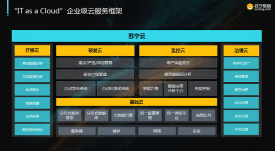 对于尤其像苏宁一样历经转型阵痛的一些企业,乔新亮认为,当前做数字化转型管理,首要考虑的可能并不是基础云,而迁移云、研发云、监控云、治理云才是CTO、CIO面临的关键性挑战。目前苏宁正在部署使用的比如一键建站、7*24无人值守、秒级发布、绩效治理、灰度发布、数字资产治理、智能告警等等苏宁云产品,在苏宁整个IT管理的体系建立方面起着举足轻重的作用。