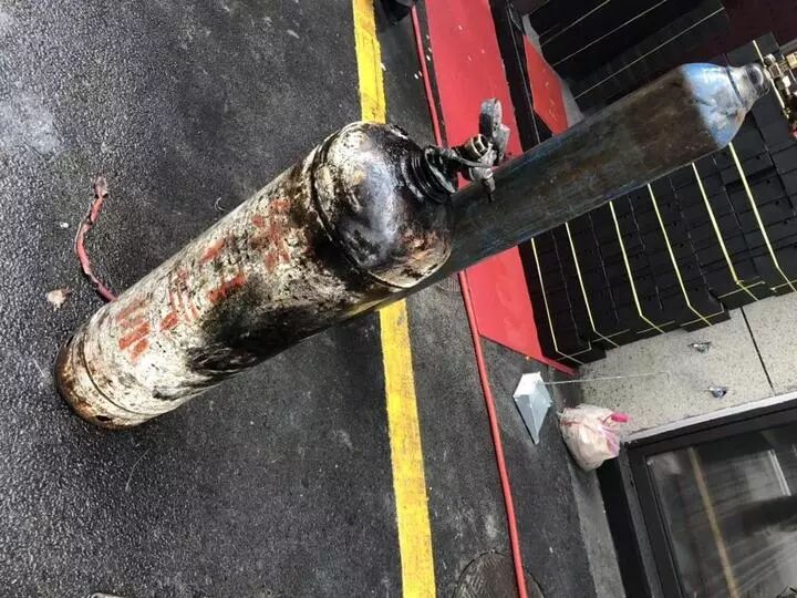 瓶罐里装的是易燃易爆的乙炔气体,现场的人员紧张万分,一边用水枪和灭火器自救,一边向派出所和消防部门求救。