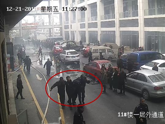 持续的高压水枪和灭火器扑救,乙炔罐体的温度降低,火势慢慢小了下来。几分钟内,派出所增援警力和消防队员也迅速赶到了现场。