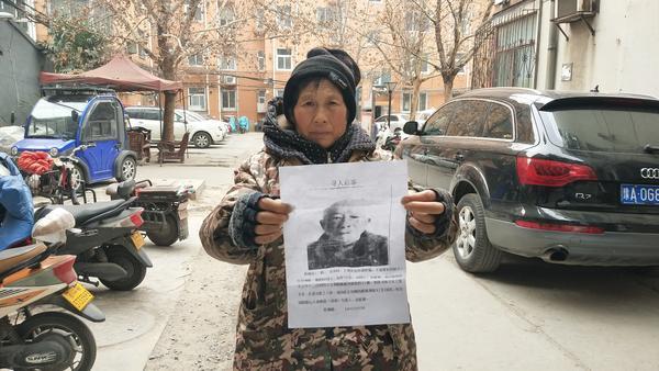 老人走丢时,上身穿蓝色保安服,下身穿黑色裤子,牛仔棉鞋,戴线帽子。朱桂英说,老伴儿略有点痴呆,而且走路很慢,一旦坐下就站不起来,不爱说话。
