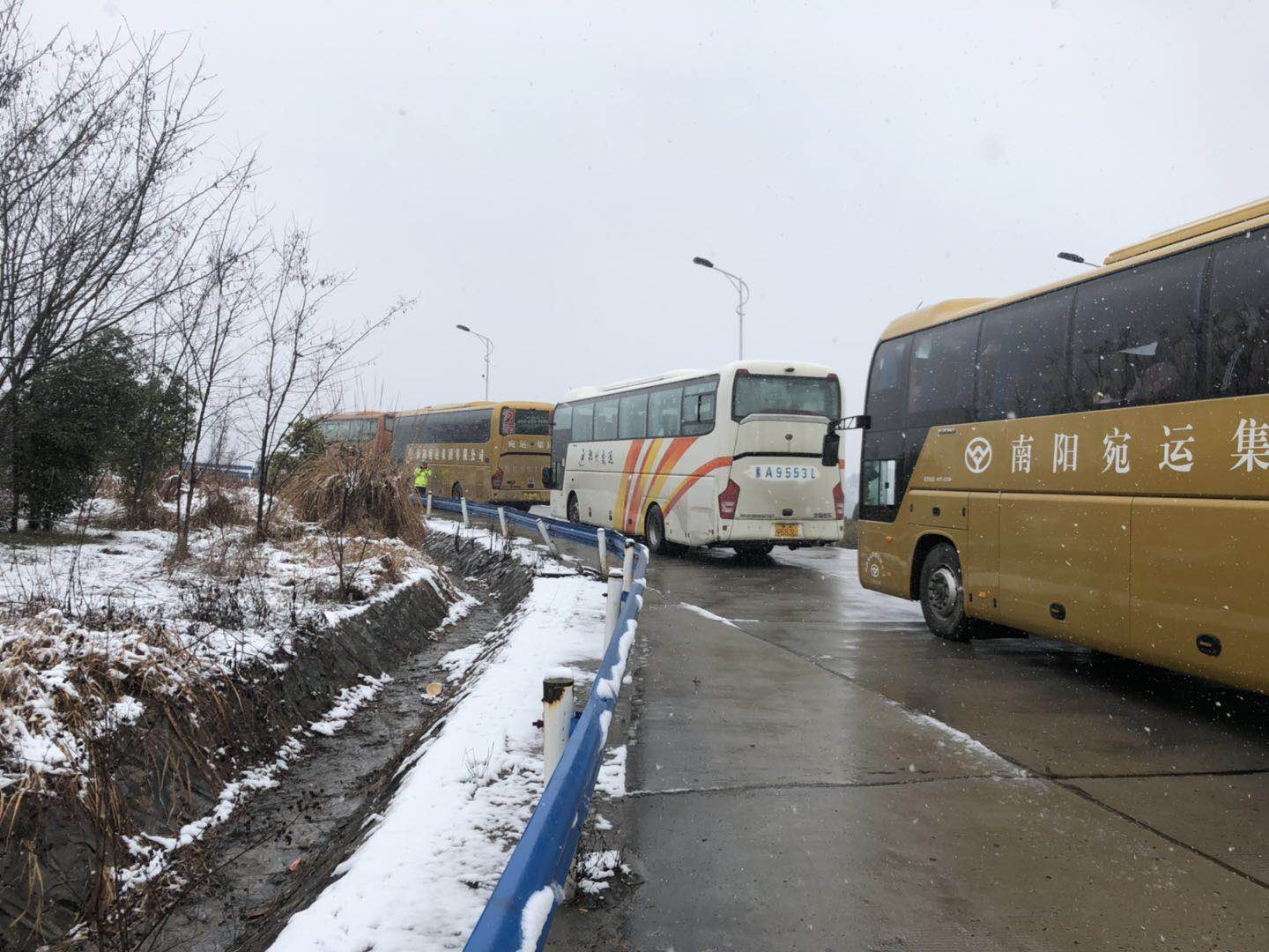 原标题:大雪致13辆大巴滞留豫鄂省界,两省高速交警接力护送