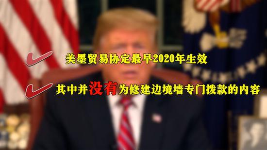 事实:美墨贸易协定最早在2020年才能生效,而其中并没有为修建边境墙专门拨款的内容。
