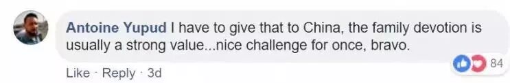 “中国这一点确实值得称道,人们都有很强的家庭观念,这真是个有意义的挑战视频,干得漂亮!”