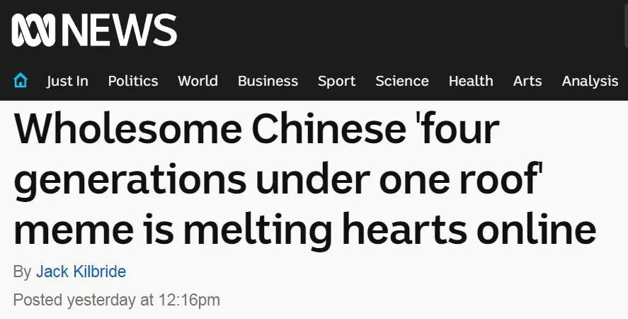 澳大利亚广播公司(ABC News):中国健康向上的“四世同堂”短视频暖化网友心