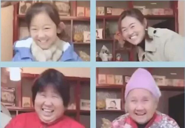视频里,从青春活泼的孩子到步履蹒跚的耄耋老人,四代人在一声声“妈”的叫唤声中,依次出场。