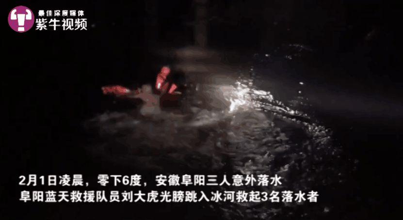 “加油!加油!再坚持一下,很快能回家过年了!”2月1日凌晨1点多,寒风凌冽,气温只有零下6摄氏度,在安徽阜阳256省道旁的一条小河里,扑腾着几个身影,一名光着膀子的救援队小伙正在努力地将3名落水者救上岸……