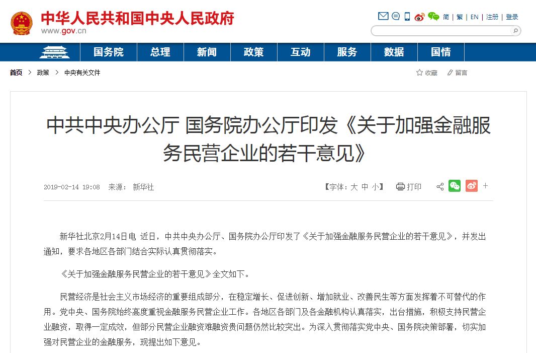 2月14日晚间,新华社发布消息称,近日,中共中央办公厅、国务院办公厅印发了《关于加强金融服务民营企业的若干意见》,并发出通知,要求各地区各部门结合实际认真贯彻落实。