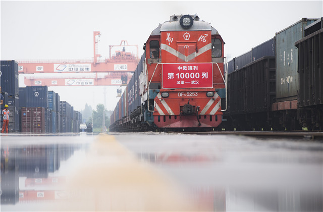 X8044次中欧班列(汉堡—武汉)到达武汉吴家山铁路集装箱中心站(2018年8月26日摄)。新华社记者 肖艺九 摄