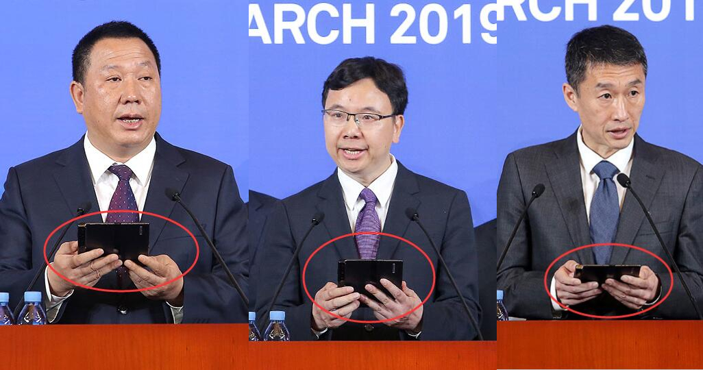 然而在这一重大时刻的现场,华为特意让自家最新的折叠屏手机Mate X登场亮相,不失时机打了个广告。