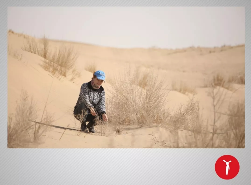 工作不仅不像想象中的有趣,反而十分辛苦。我们经常要一手拿着铁锨,一手提着苗木,补种植物进行固沙。一天下来,要在沙漠中徒步走三到四十多公里。长时间的风吹日晒,我开始用各种化妆品进行遮瑕,却怎么也遮不住黝黑的皮肤。那时的我,内心开始有点动摇:“到底还要不要坚持在治沙站工作?”