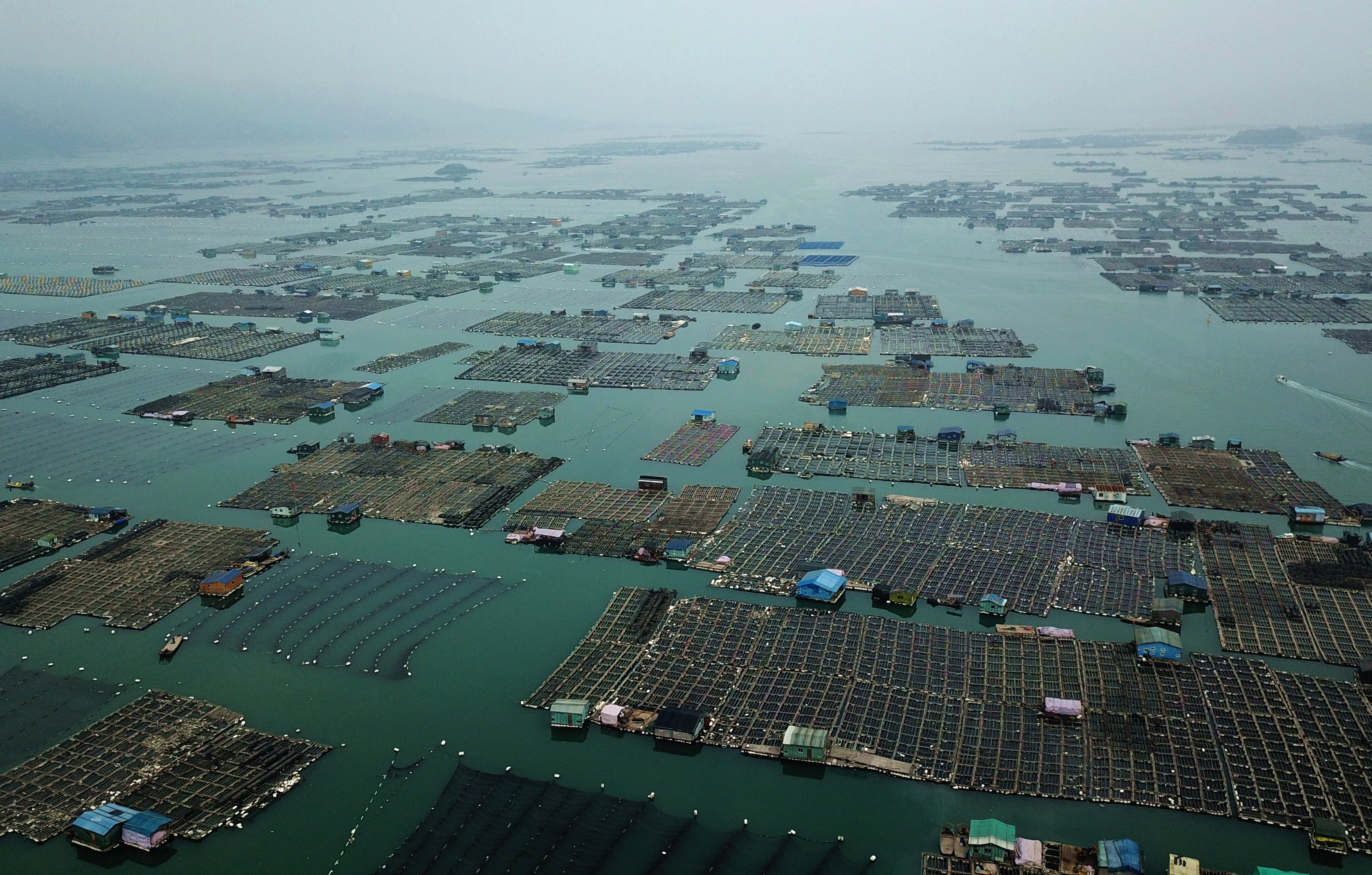 7月17日,福建省霞浦县下浒镇海上养殖区,用新型材料建设的渔排已经投入使用(无人机拍摄)。截至目前,霞浦县已清退禁养区渔排3万余口,藻类清退5千余亩,渔排改造累计下水4.2万口,藻类改造累计下水19.4万亩。