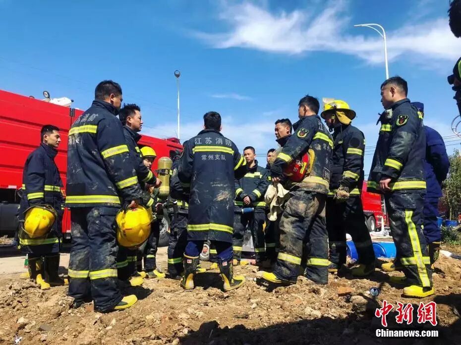 “逆行”爆炸现场的常州市消防救援支队外环路中队中队长陈意刚下救援一线,满身疲惫,两眼通红。