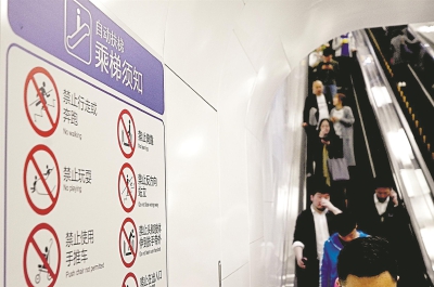 连日来,记者在地铁车站电梯口观察,发现语音提示反复播报“请紧握扶手,不要看手机,注意脚下安全”,并没有明确告知不要“左行右立”,目前只是在新贴出的告示中,明确宣布“禁止行走或奔跑”。