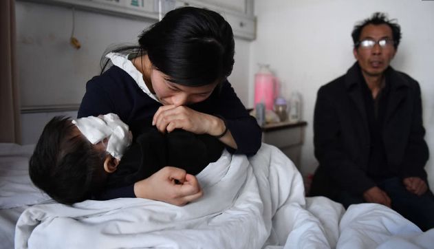 一男子见状,赶紧将浑身是血的小男孩抱到自己的私家车上,一路狂奔,送到附近医院抢救。
