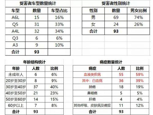对于4月22日发出的举报资料,财经网从当事人处了解到,其中内容除了更新患者数量之外(最新数据是93人),也提到了外界关心的有关当事人患病与奥迪车之间的“因果关系”问题,当事人建议相关部门向有关“毒理学”方面的专家征求意见,而非血液病方面的专家,因为“血液科医生研究的是如何治疗白血病,化学中毒致白血病是毒理学研究的领域”。