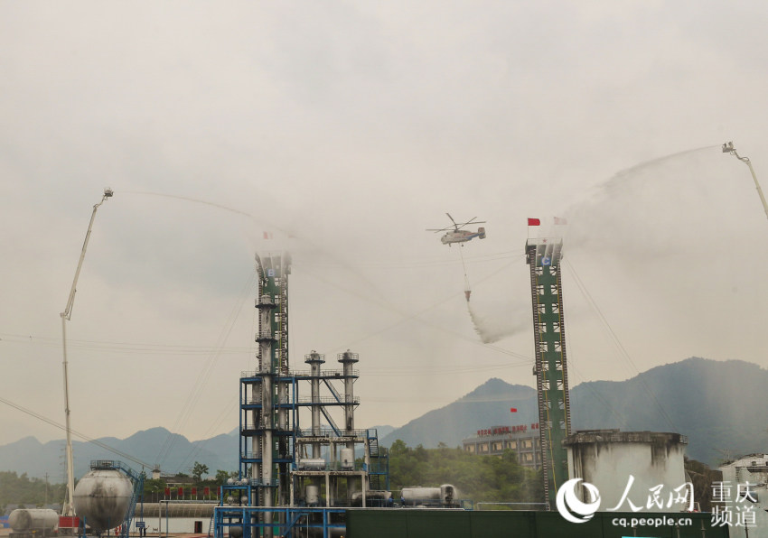 图为兰州消防指战员现场演示班组协同作战梯次进攻灭火操法。