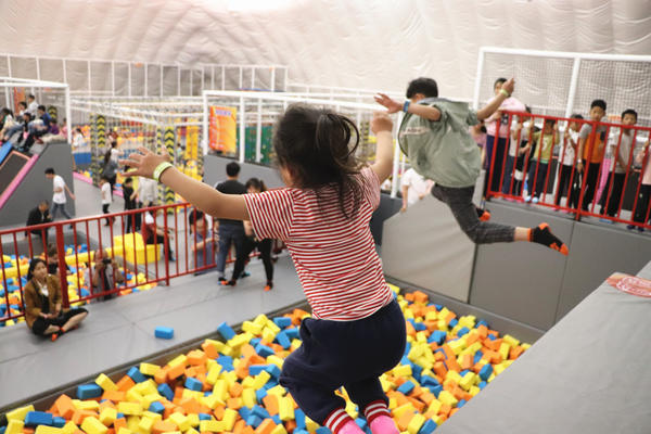 气膜场馆配置新风系统,恒温恒湿,为全年健身娱乐的绝佳场地。可同时容纳1800人开展体育运动。项目自4月1日试运营至今接待客流量3万人次,仅五一小长假期间就有超过1万人次在此健身活动,仅5月3日当天就有近0.3万人前来。