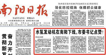 源于5月23日,《南阳日报》刊发的《水氢发动机在南阳下线,市委书记点赞!》报道。