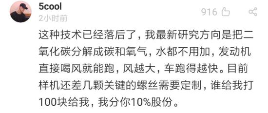 有网友纷纷表示:“把发动机的排水口和注水口连起来,这不就是永动机?”“‘加水就能开’难道不是水变油骗局的翻版?”
