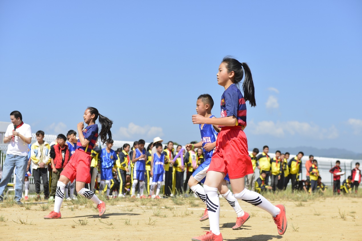 要想学习好,运动也得好好搞。捐赠仪式结束后,一场别开生面的乡村小学足球赛就在学校操场上举行,娄一晨在操场边为孩子们仔细讲解足球知识。“这些大山里的孩子们表现让我很惊讶,足球技能真的还不错!”娄一晨笑着说道。身着江苏苏宁俱乐部专业球衣的小朋友们,最终以1:1打平,在一片欢笑声中结束了比赛。