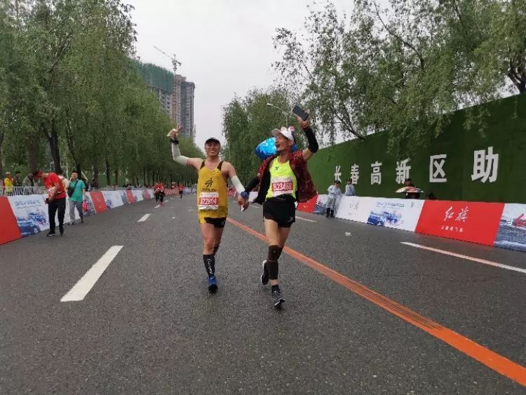2017年的第一届长春国际马拉松是奚占玉第一次穿花棉袄参加的赛事。走之前,他带着烟、酒和糖块去了夏树云的墓前,告诉她,他要去长春跑马拉松,希望她也能“看到”现场有多热闹,人们有多开心。