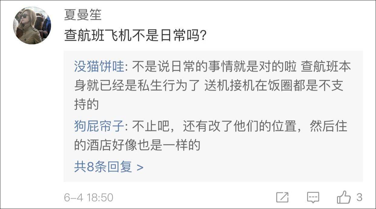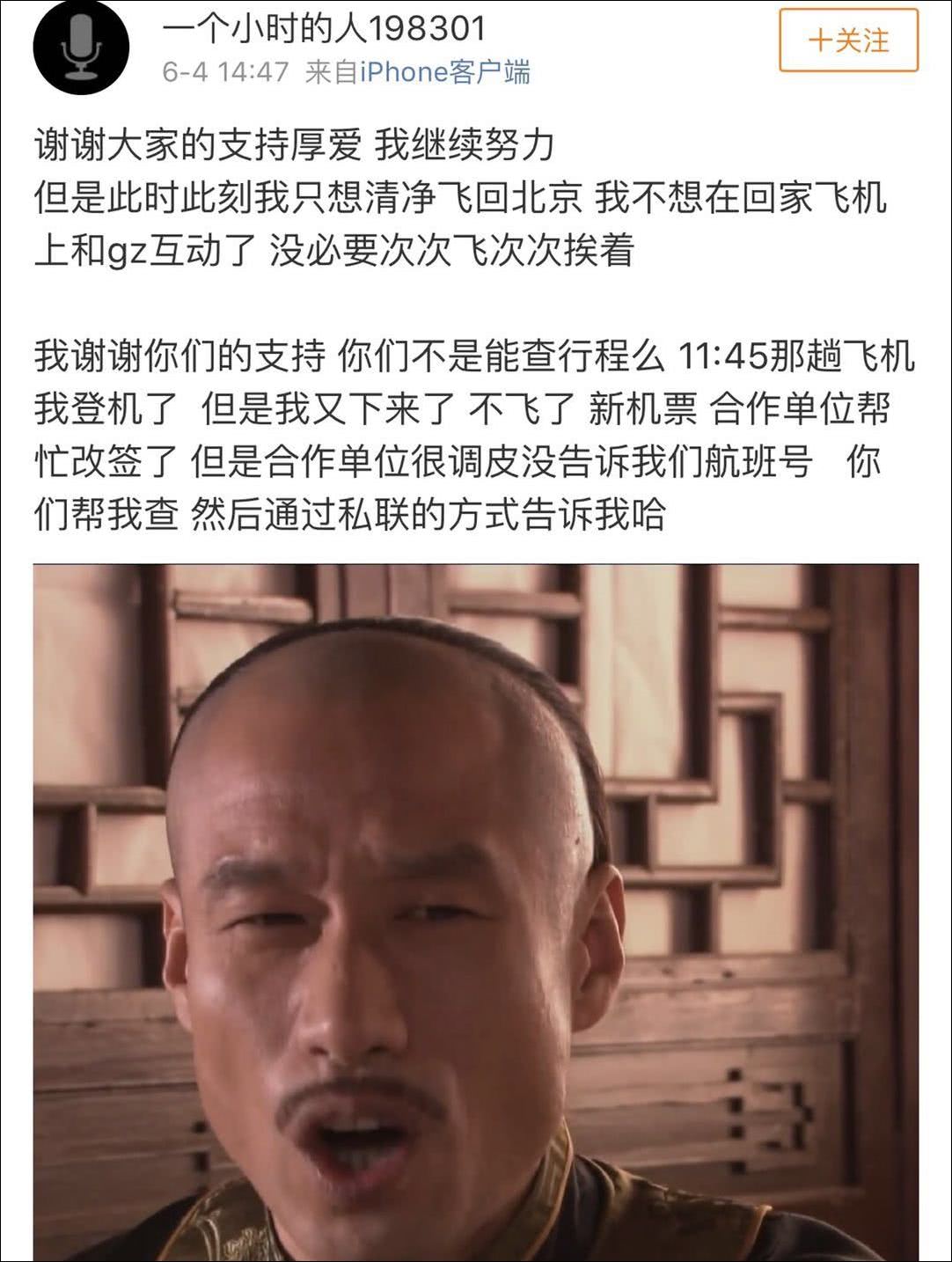 他又无奈调侃,“上个航班我已经下来了,但合作单位调皮没告诉我航班号,你们不是能查行程吗?你们查查,然后告诉我吧。”暗示自己的行程完全被掌握。