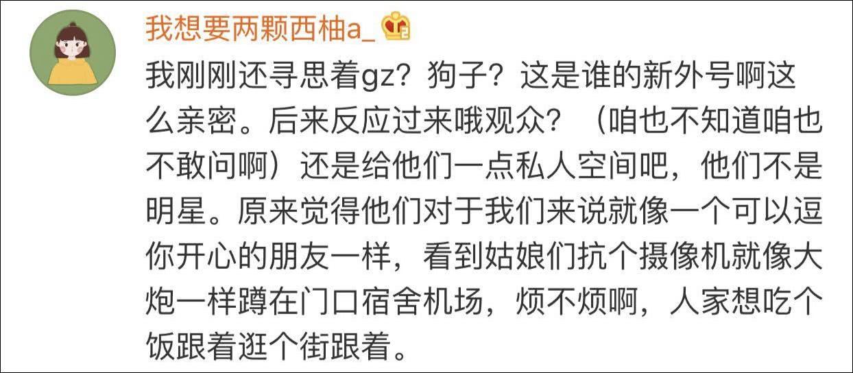 对于“gz”一词,媒体和粉丝均认为是“观众”拼音缩写,相声演员被观众尾随,这操作不就是明星的“私生饭”?