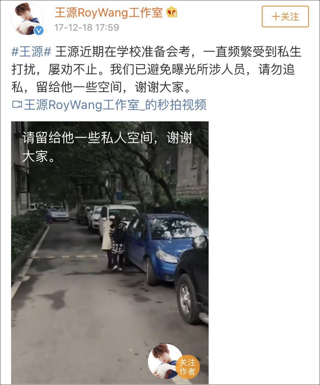 王源工作室就曾发文批私生饭在校内的跟踪行为;