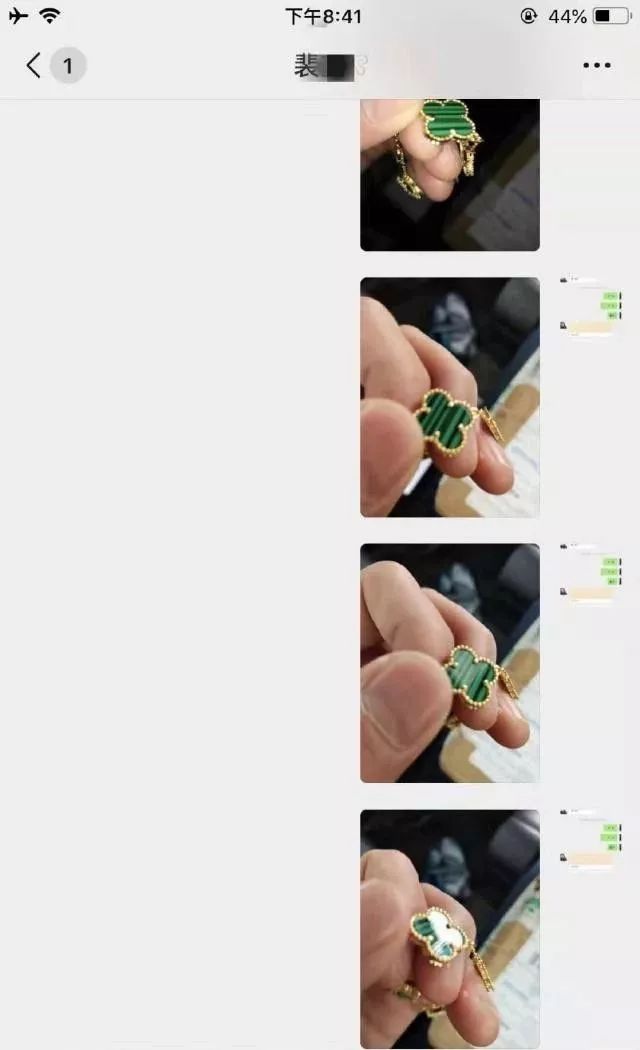 郭某楠称,他曾在微商裴某处花1000元购买了一条梵克雅宝手链。但打开快递包裹后,他发现,“(手链)是塑料的”。