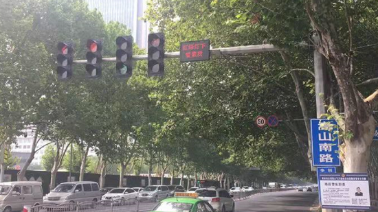 2019年7月16日,郑州嵩山路中原路,路面上的信号灯旁出现了一个新屏幕,有时候屏幕上显示着各类交通宣传语,在信号灯快要变化的时候,又能够及时为出行者进行信号计时提醒,这是郑州交警为了群众能够更明了地掌握信号灯时间,设置的智能信号灯计时提醒系统。