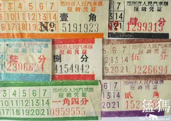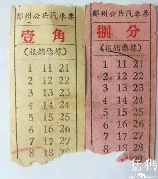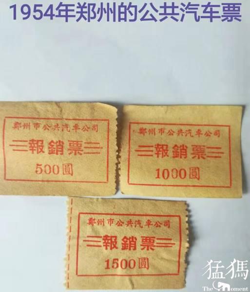 1954年,当时全国用的钞票还是第一套人民币,一万元相当于后来的一块钱,郑州的公共汽车票分为三种面值,分别是500元、1000元、1500元,相当于后来的5分、1角、1角5分。