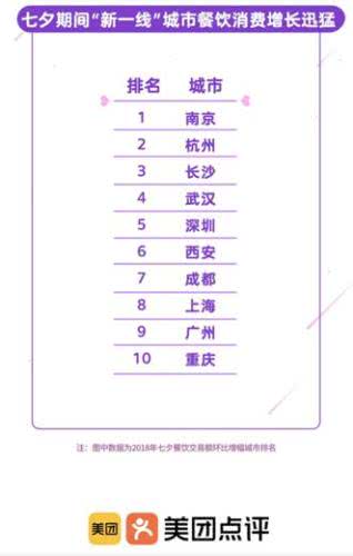 新一线城市七夕消费增长领先 情侣七夕约会偏爱中餐