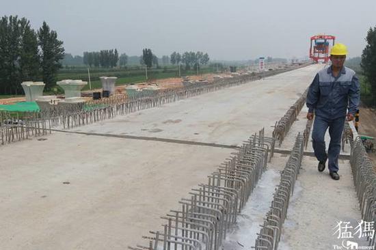 8月2日,记者在施工现场采访时,该项目部负责人介绍说,2017年12月8日,他们开始进场施工,截止今年7月31日,钻孔桩完成5360根,完成比例96%;承台完成573个,完成比例70%;墩身完成328个,完成比例40%;螺杆桩完成43.9万米,完成比例93%;路基填筑完成17.5万方,完成比例30%;箱梁预制完成134孔,完成比例17%;箱梁架设完成8孔,完成比例1%;重难点工程跨商登高速5联连续梁,10个连续梁主墩均已进入正常节段施工,各项指标均处于全线引领。
