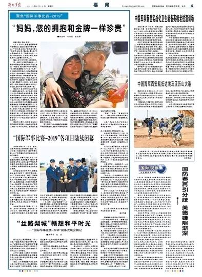 (本文刊于《解放军报》2019年8月18日04版) 编辑:徐琳 程安琪 张丹 胡恬 编审:任旭 投稿邮箱:zgjw_81@126.com