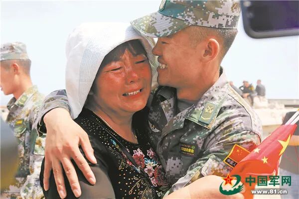 激动的人群中,有位身穿白色T恤的妈妈非常显眼。和她拥抱的是第二车组下士车长毛帅航。接到部队邀请后,帅航妈妈杨贤琴马上联系正在北京打工的丈夫,得知工地工期紧张后,她果断决定,带着10岁的小女儿毛媛瑜前来。买衣服、做头发……见面前的两天时间里,帅航妈妈可劲地拾掇自己和闺女。