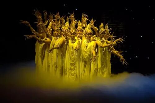 2019年4月23日晚,大型室内情景体验剧《又见敦煌》在甘肃省敦煌市上演。(新华社记者 范培珅 摄)