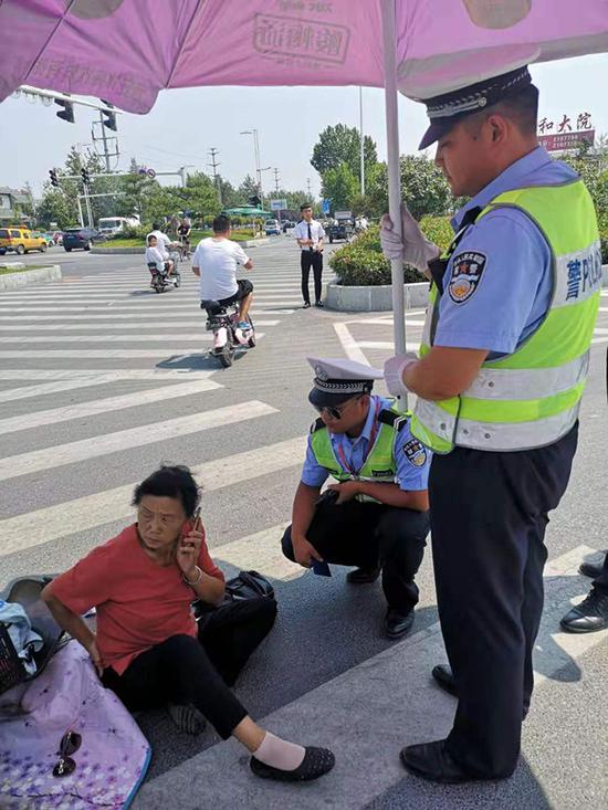 8月19日中午11时30分左右,在安阳市文昌大道与东风路交叉口红绿灯处,一辆面包车与一辆电动车发生剐蹭,骑电动车的是 一位年逾六旬的老人,老人从车上摔倒在地,腰部受伤,无法站立行动。正在执勤的安阳市交警支队直属一大队二中队的交通辅警付晟毅发现这一情况,与其他几名同事赶忙上前救助。