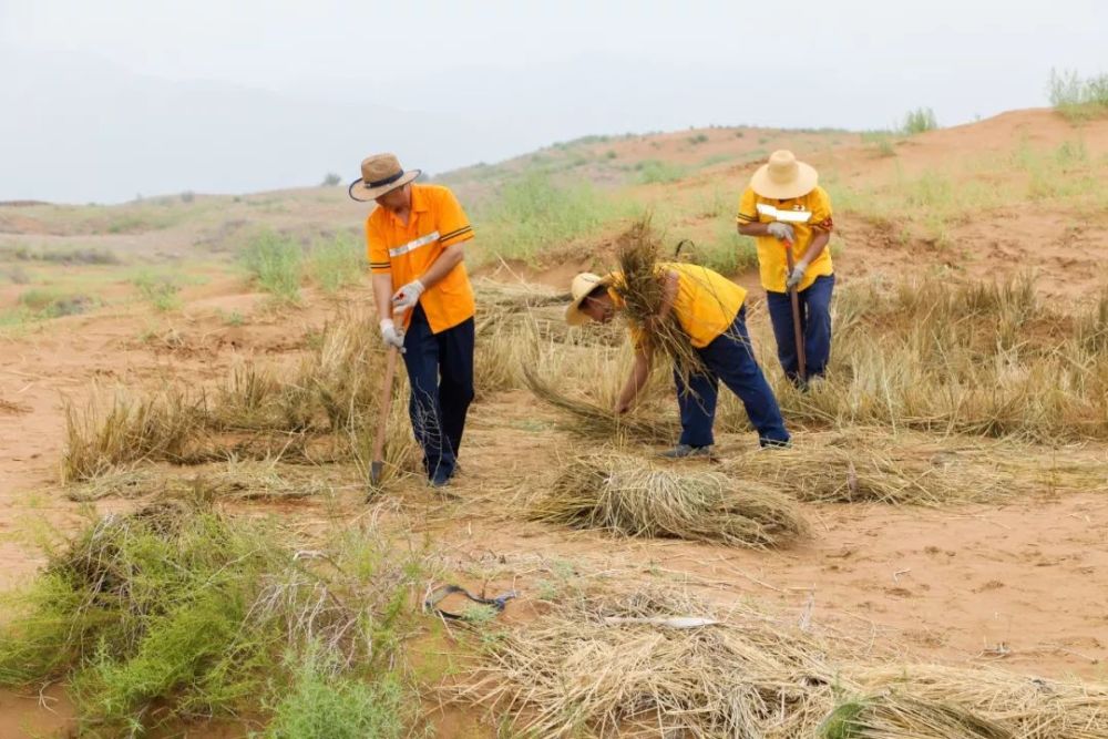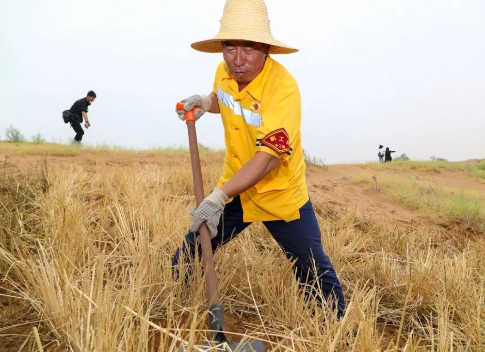 “先画线、再铺草、压草……”记者固沙神器“草方格”后感叹:我这么干肯定会没工资的。看工人们怎么固沙,戳视频↑ 除了人工深栽,还有“黑科技”治沙方法:用发电机打树洞,这要比用铁锨挖一个树坑的时间少很多,可以节省做12到13个,机械化大大提高了工人们的效率,一台机器可以抵12、13个人的工作量。