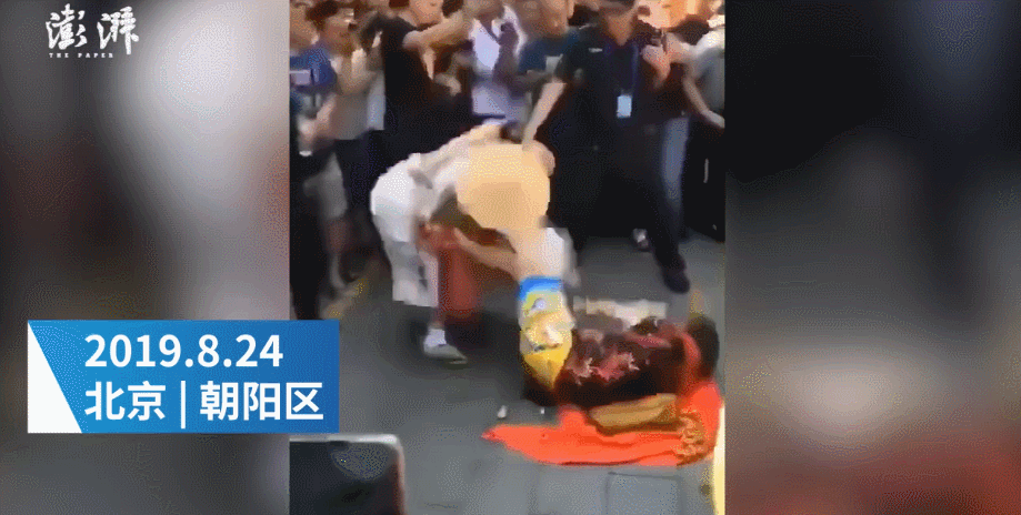 据澎湃视频8月25日报道,24日,在北京市朝阳区潘家园旧货市场内,两个身背大葫芦、多串木珠,穿着长袍的网红“大仙”打成一团,引发群众围观,随后,双方均被警察带走。